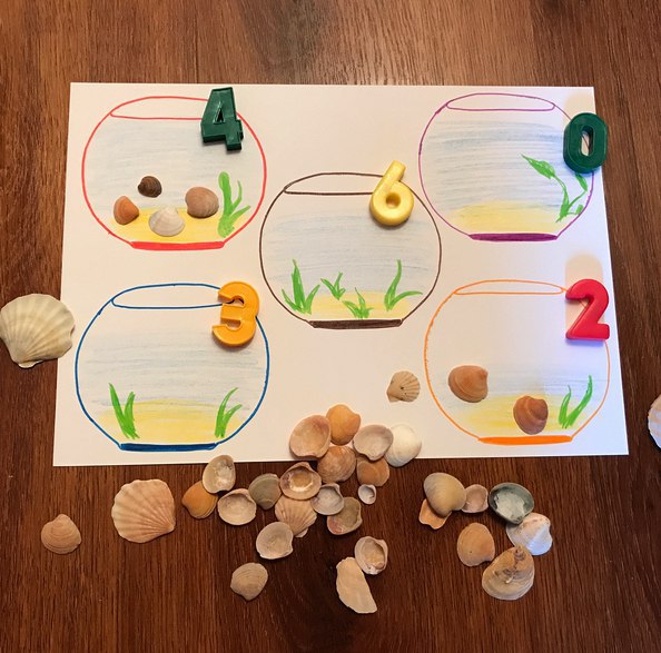 Интересное применение найдётся ракушкам, привезенным с моря. Такая игра поможет младшим дошкольникам быстрее научиться складывать и вычитать. Теперь абстрактные арифметические действия можно видеть на наглядном примере.